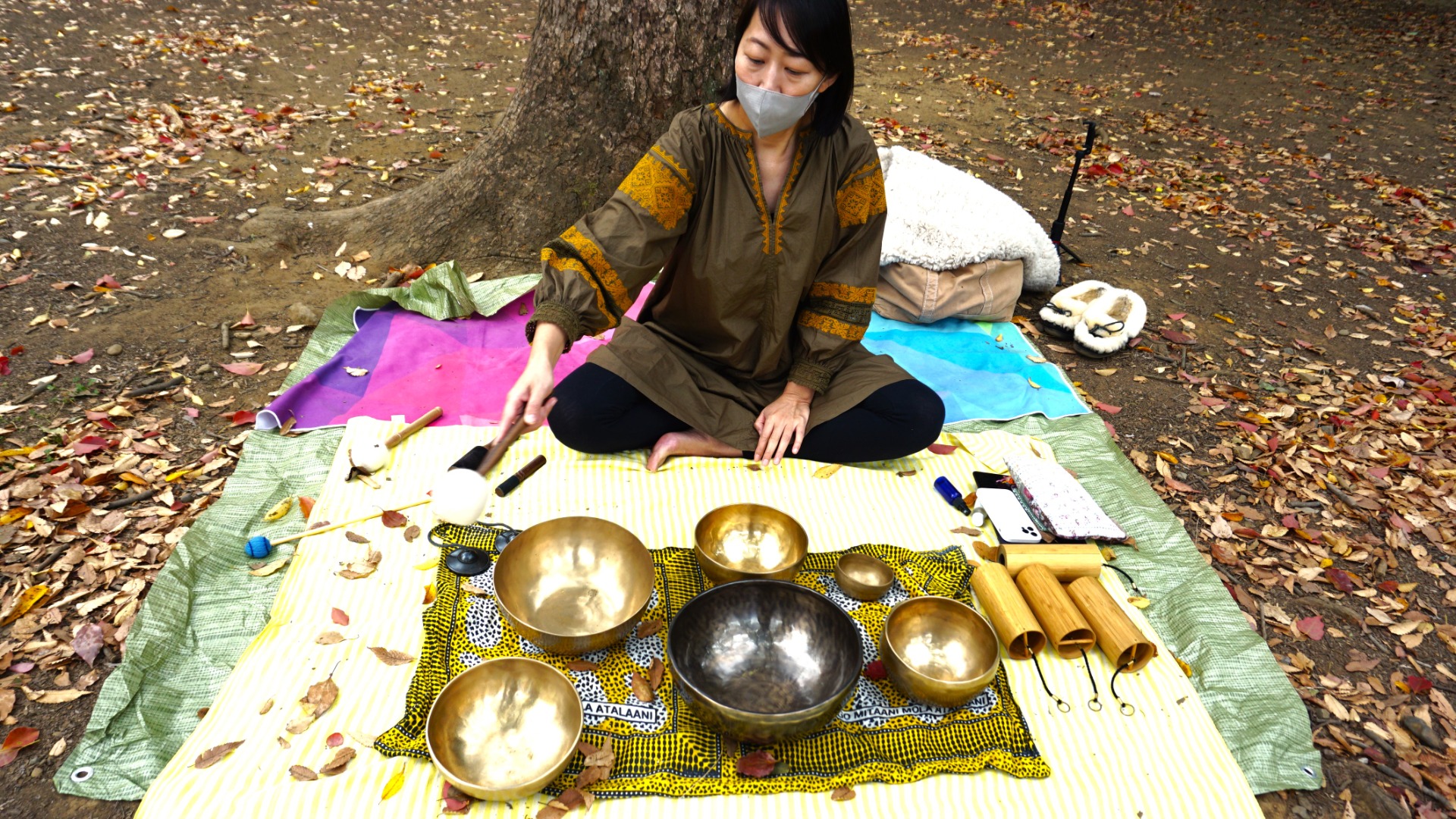 | 紅葉映えの代々木公園でサウンド瞑想ヨガ体験【東京都渋谷区】 …オーボエ奏者としてオーケストラでも活躍されているそう。この日のヨガは、音楽療法でも使われる「シンギングボウル」を使った藤田さんオリジナルの「ヨガと音の… (出典:Luna Subito) |