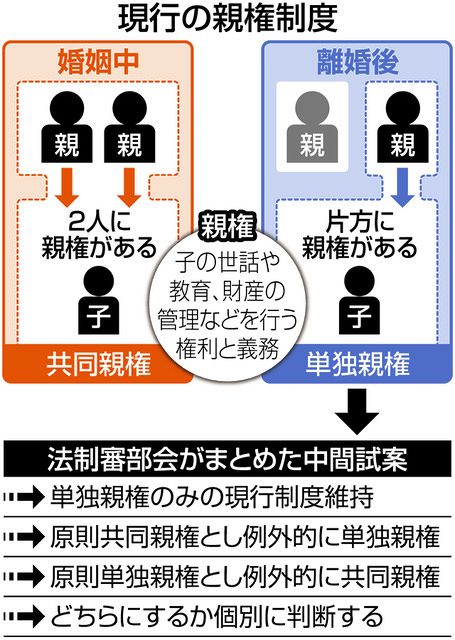 | 離婚後共同親権、衆院法務委で可決 週明けにも衆院通過の見通し 婚姻中の父母に認められている共同親権を離婚後も可能とする民法改正案が12日、衆院法務委員会で採決され、賛成多数で可決された。離婚した父母の一方が親… (出典:毎日新聞) |
