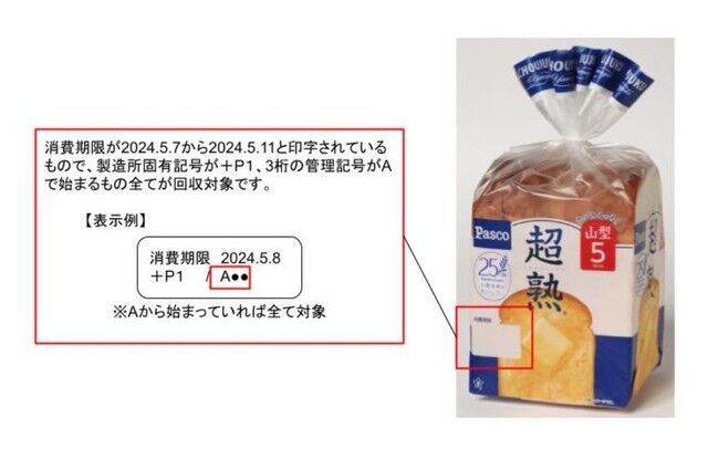 | Pascoの食パン『超熟』に“余計なもの”入り謝罪 「小動物らしき」異物…自主回収【対象商品】 「Pasco」ブランドの敷島製パンは7日、食パン『超熟』シリーズの一部に異物混入があったとし、自主回収を発表した。 公式サイトに「お詫びと自主回収に関するお知ら… (出典:オリコン) |